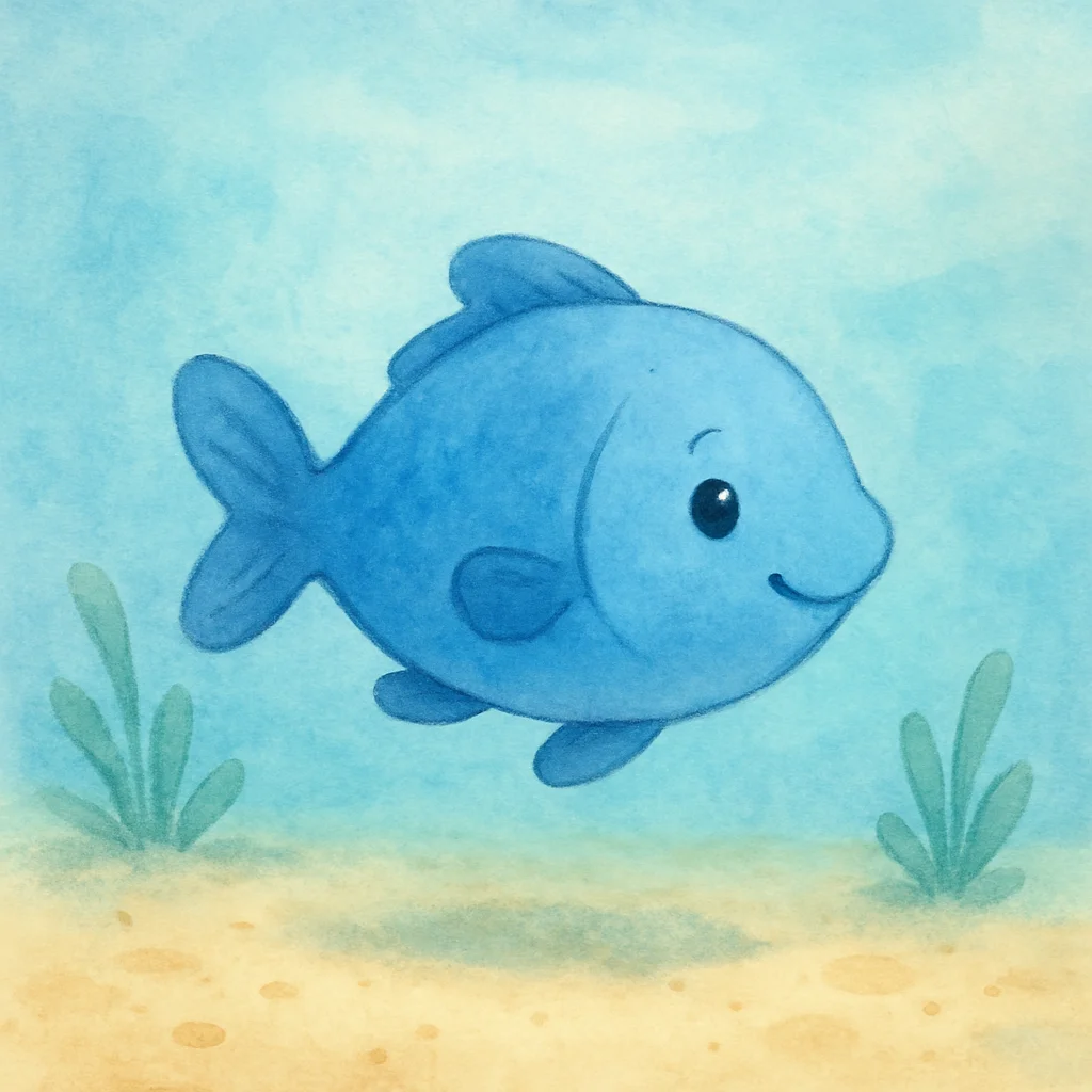 Bluefish lives in the deep blue sea. He swims fast—swoosh swoosh! Today, Bluefish wants to find blue things under the water.