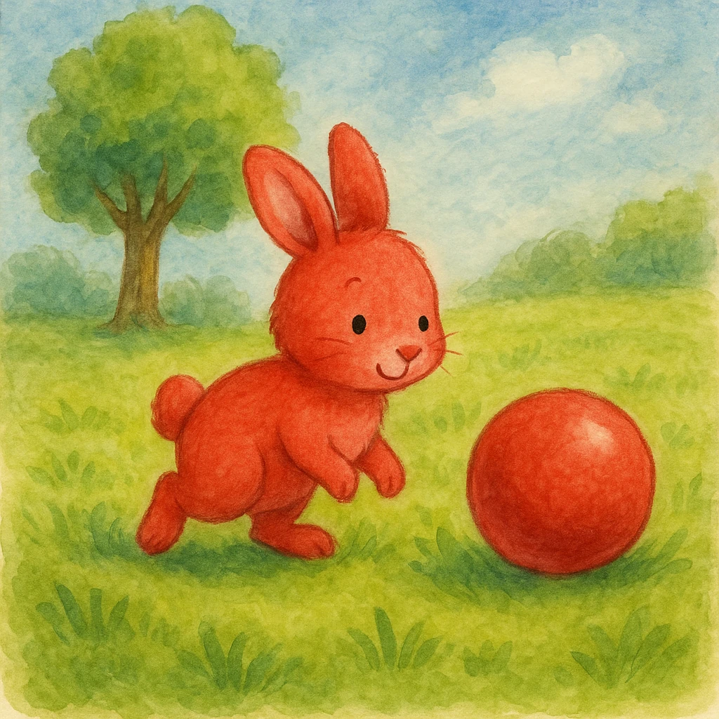 Lucky is a little red rabbit. He wakes up with a stretch and a big, happy hop! "Today, I'm playing with my red ball!" he says. He rolls it across the grass.
